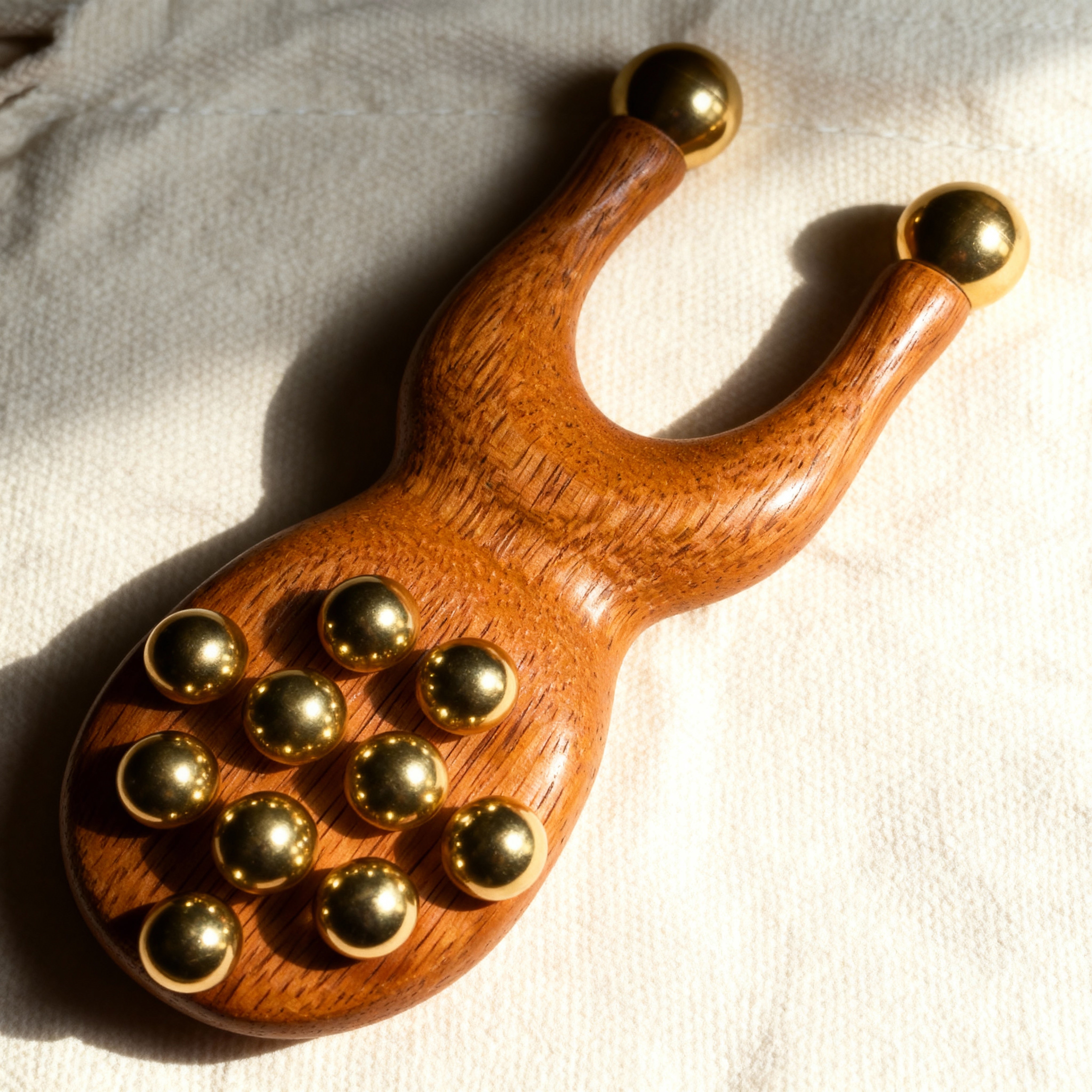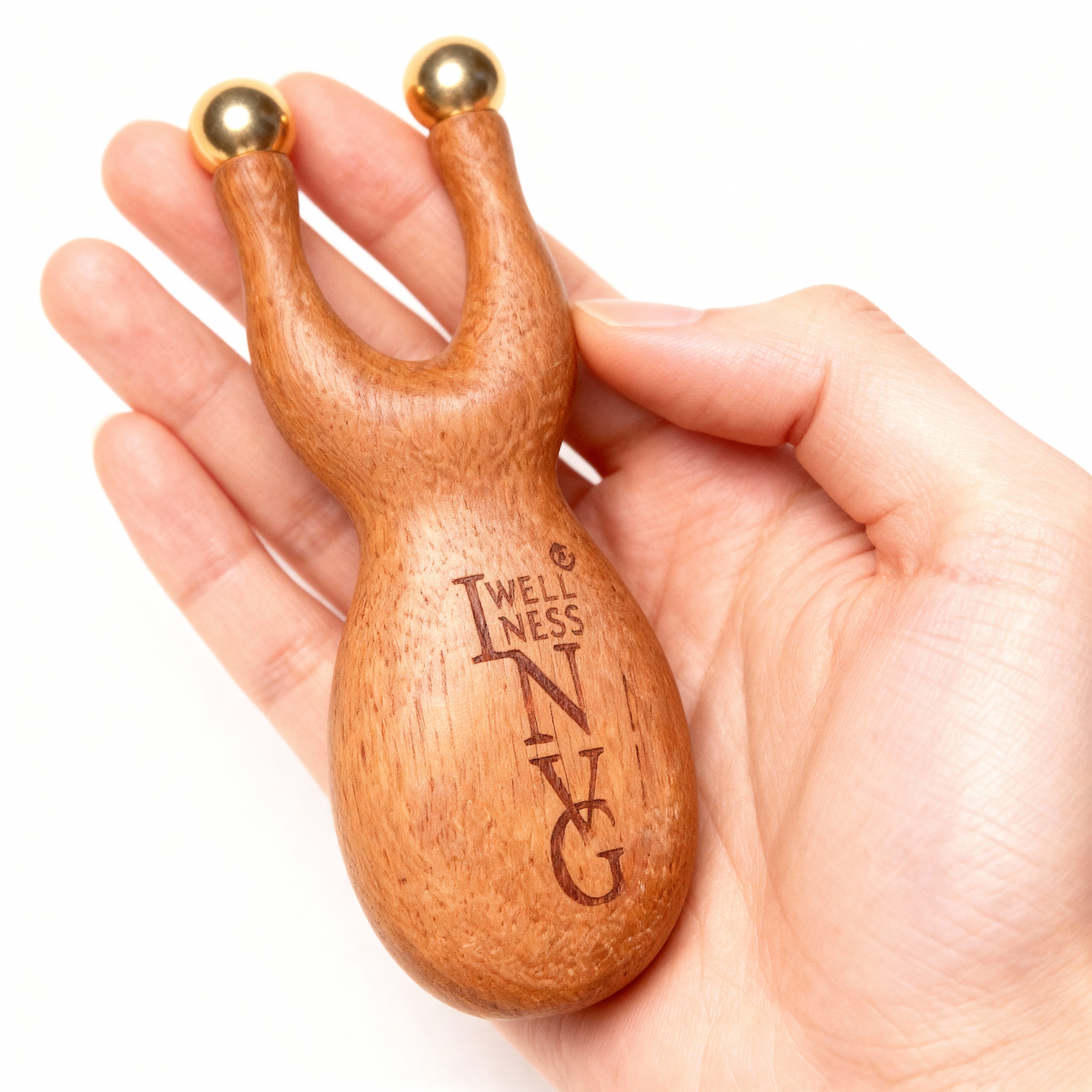 The INVG Scarab is a pocket-sized acupressure tool designed to fit naturally in your hand. Its ergonomic wooden body allows you to wrap your fingers around it comfortably, giving you full control whether you’re at home, at work, or on the go. Each Scarab comes in its own canvas storage bag.
