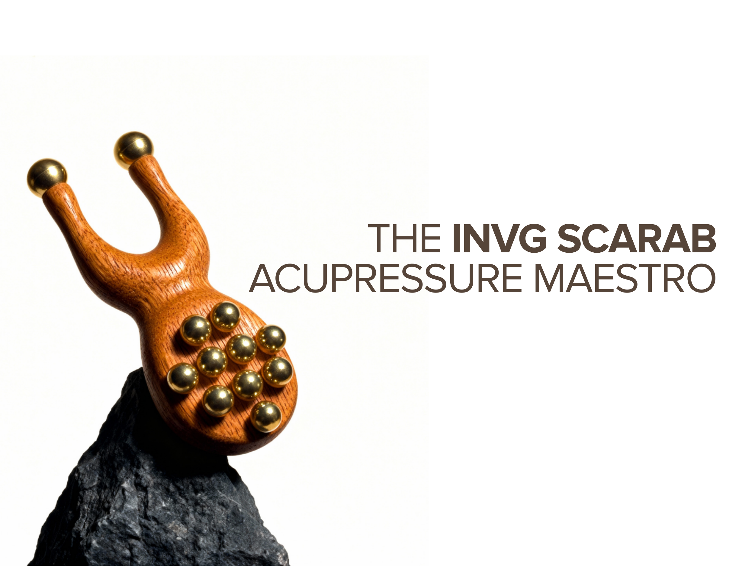 Introducing The INVG Scarab — a beautifully crafted acupressure tool made from 100% walnut wood and solid brass. Compact and ergonomic, it’s designed to fit comfortably in your hand and can be used anywhere for quick, effective relief.